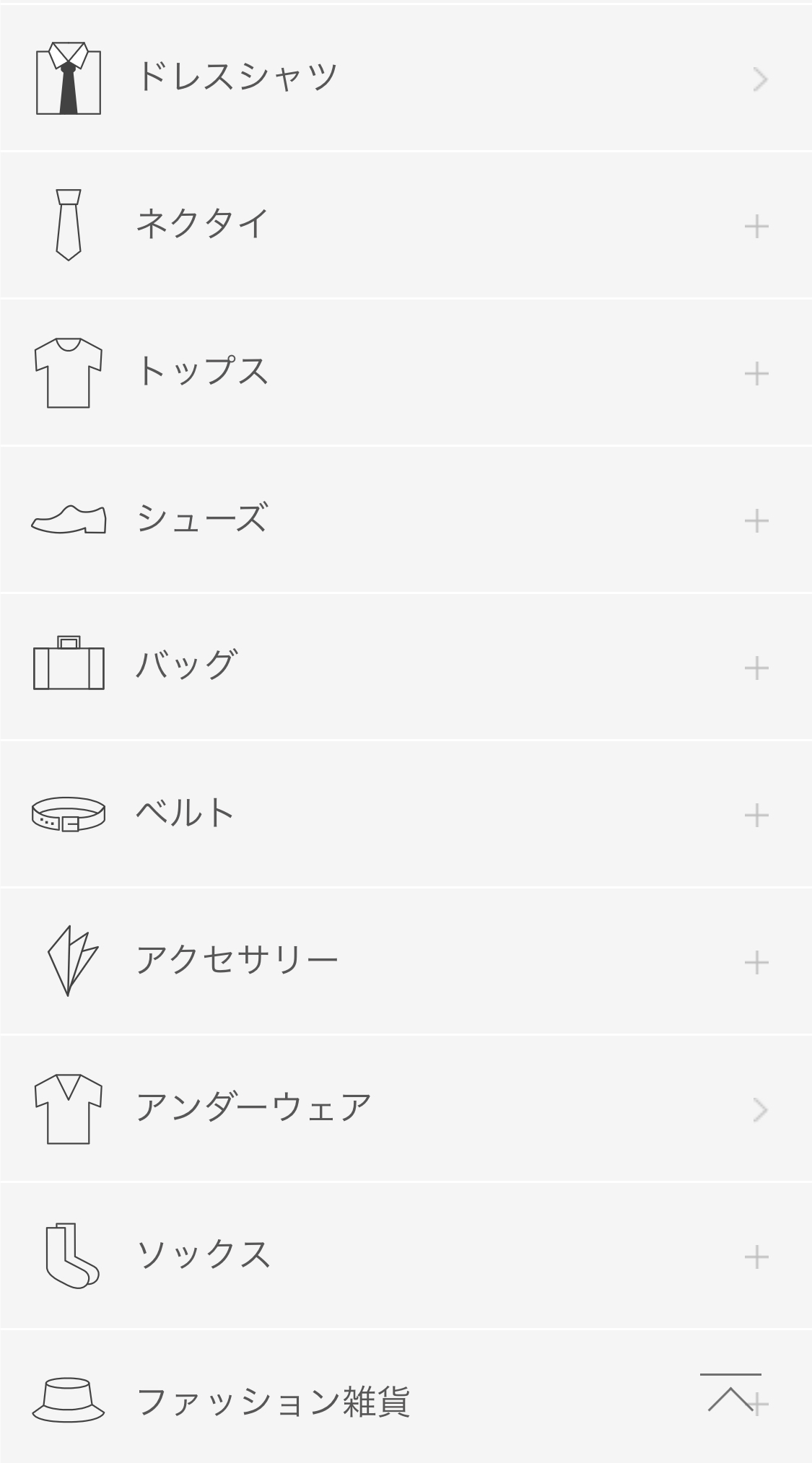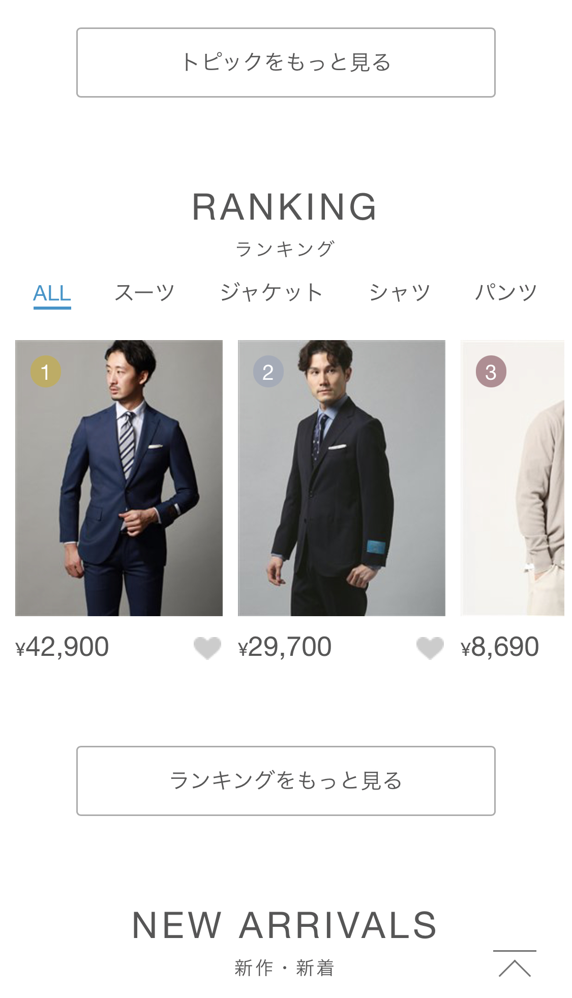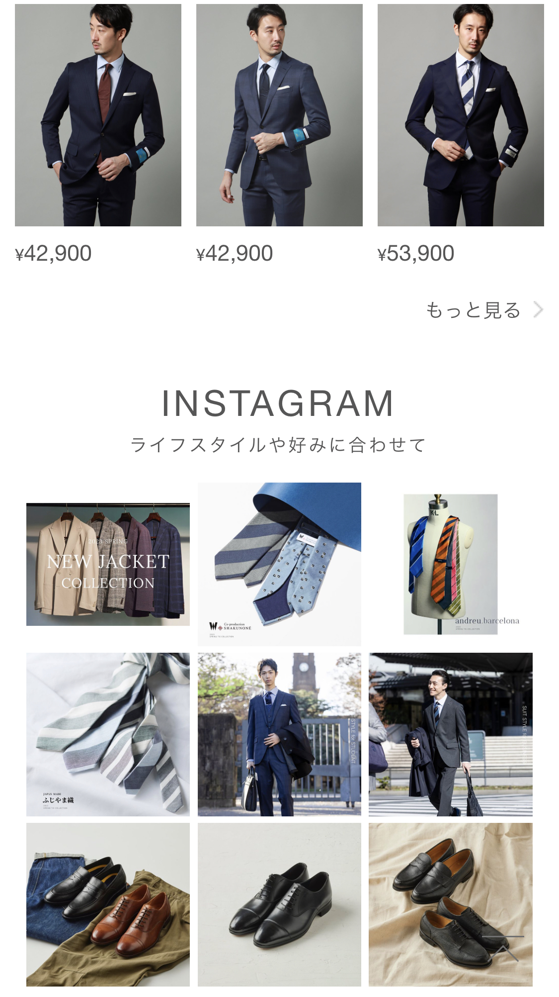 スーツだけではなく、靴やシャツなど周辺アイテムも充実