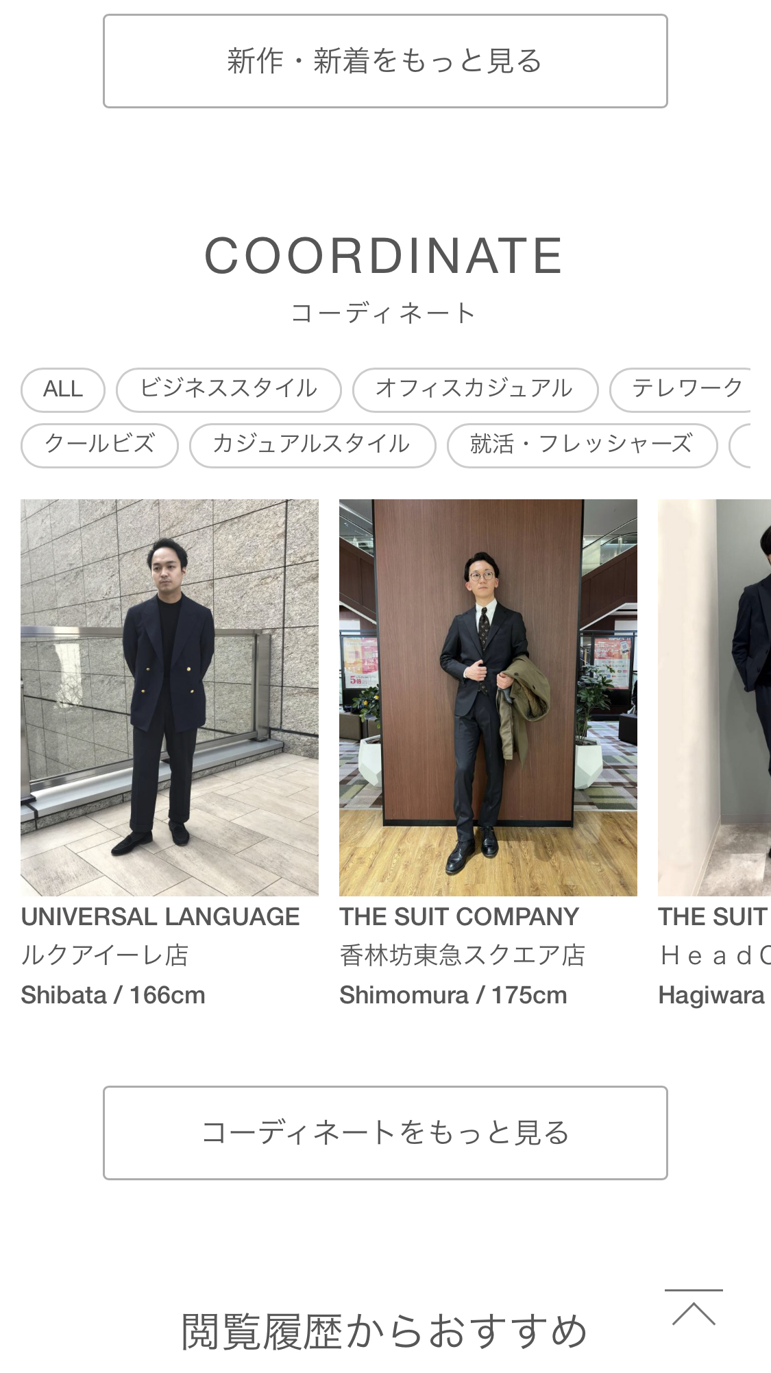 「タイト過ぎないラインのスーツも多い」